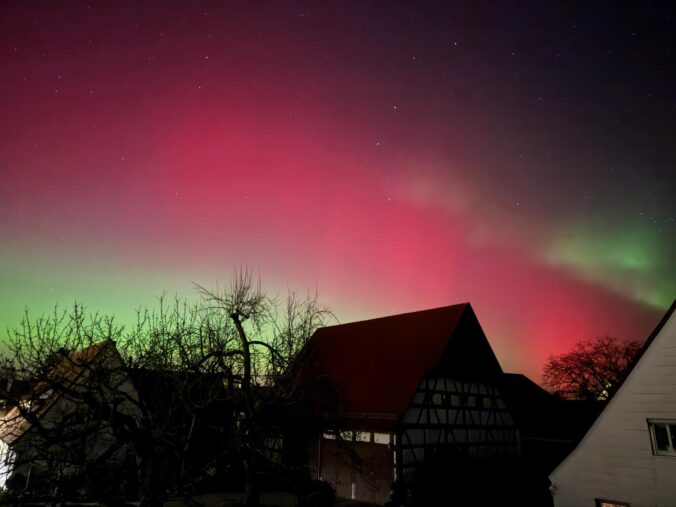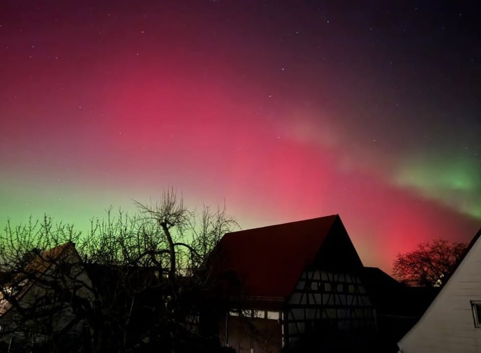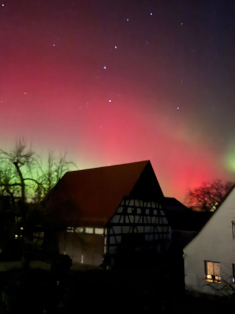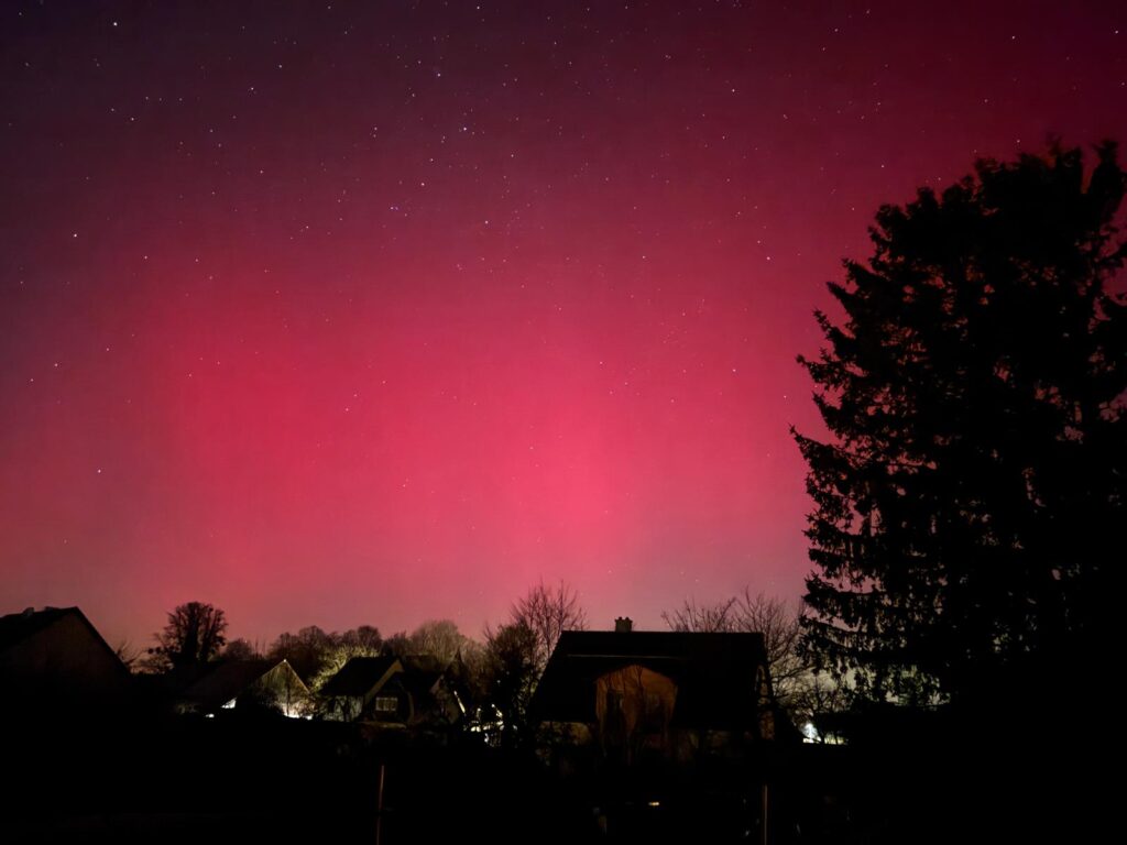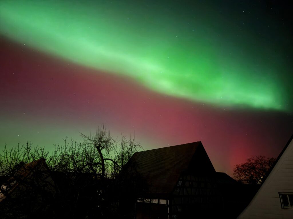 Selbst mit bloßem Auge konnten die Nordlichter, die typisch für die aktuelle Sonnenaktivität sind, kurz vor Mitternacht beobachtet werden, wobei Kameras die Farben besonders intensiv einfingen.